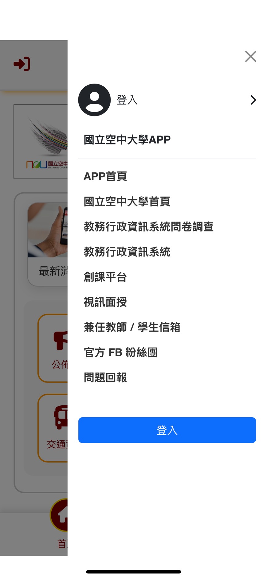 - 點選「教務行政資訊系統」→登入→輸入「帳號(即學號)、密碼」