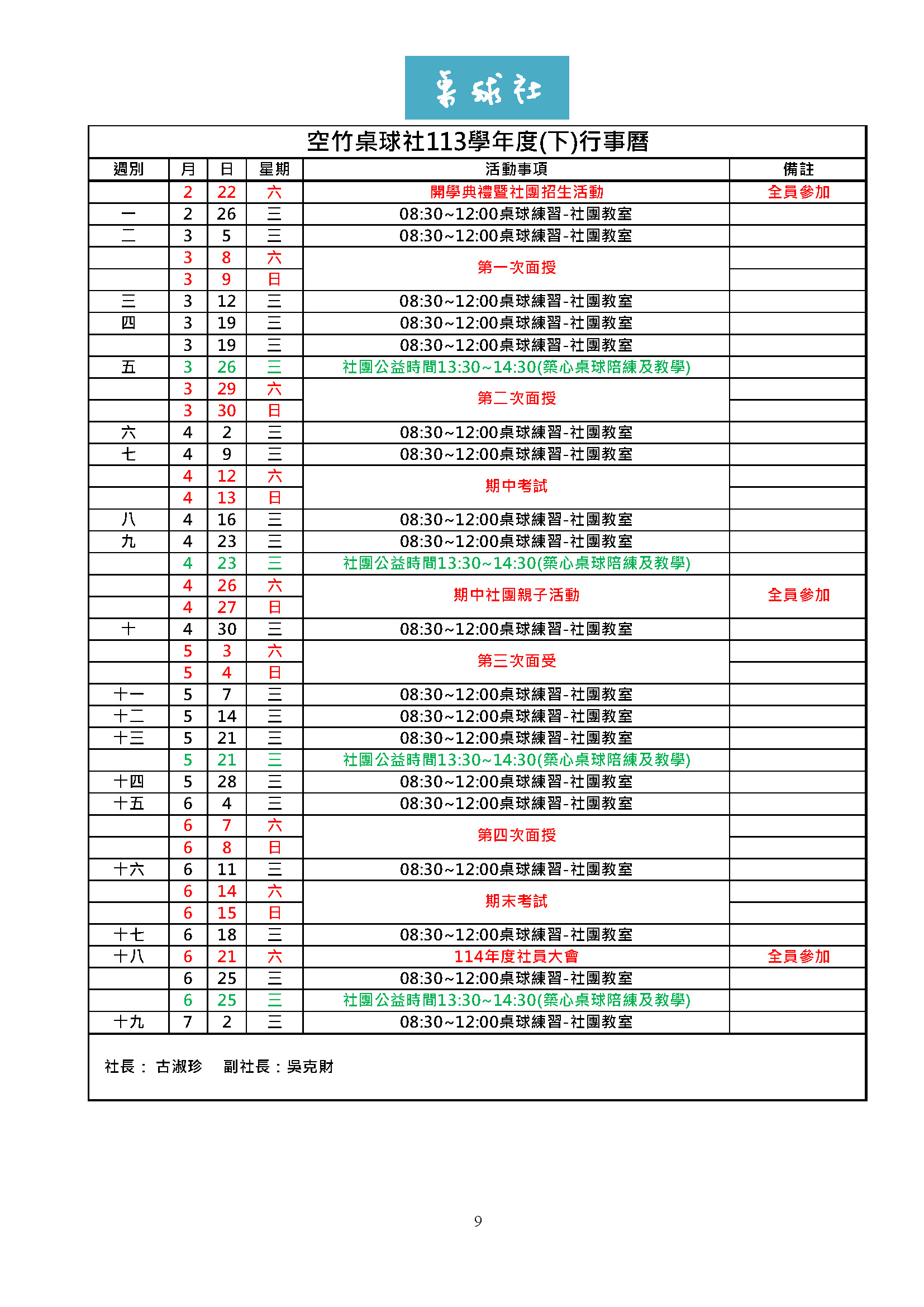 社團活動計畫總表-3/3