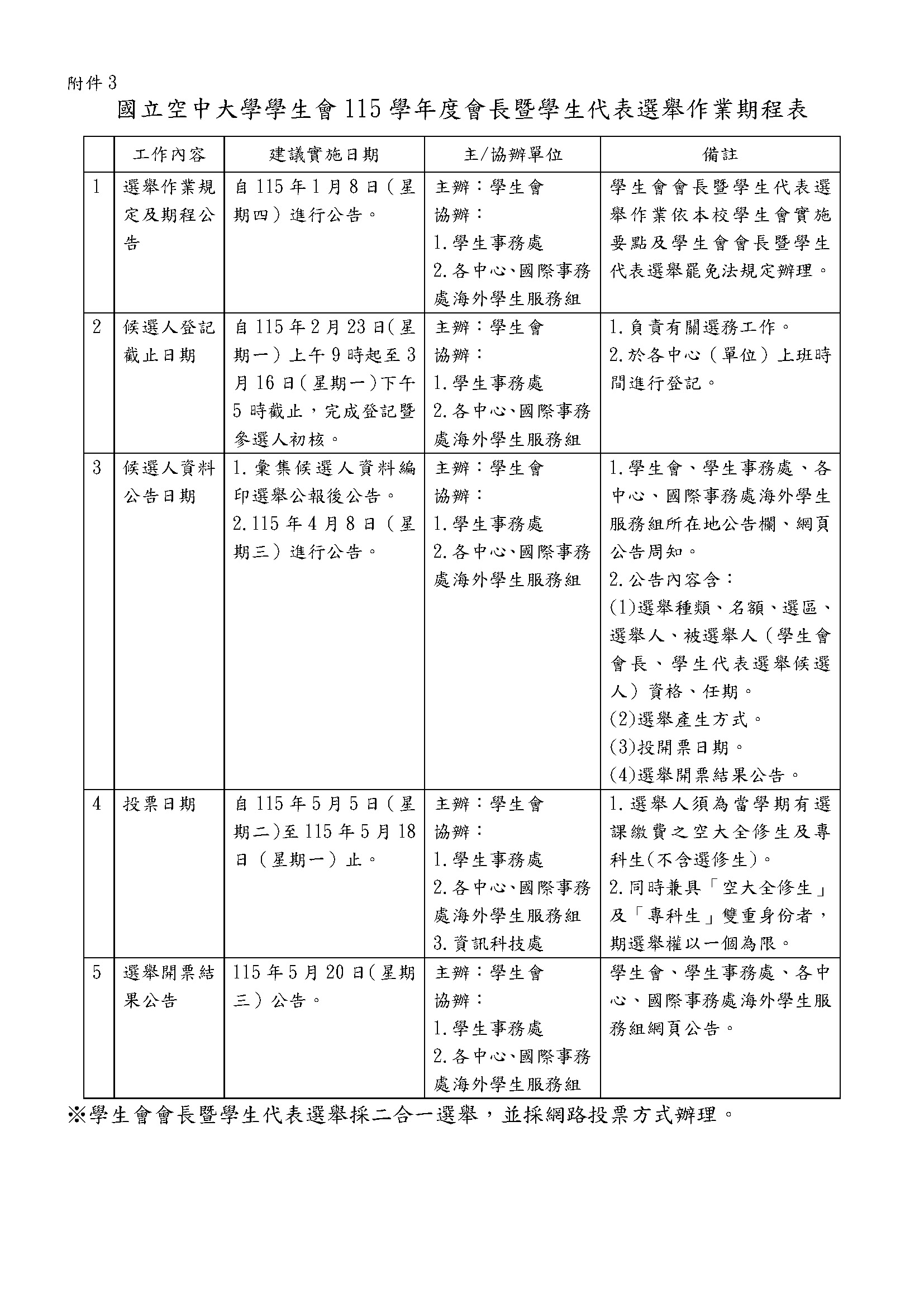 (更多候選人資訊請詳附件國立空中大學115學年度學生會學生會長及各中心學生代表選舉公報)