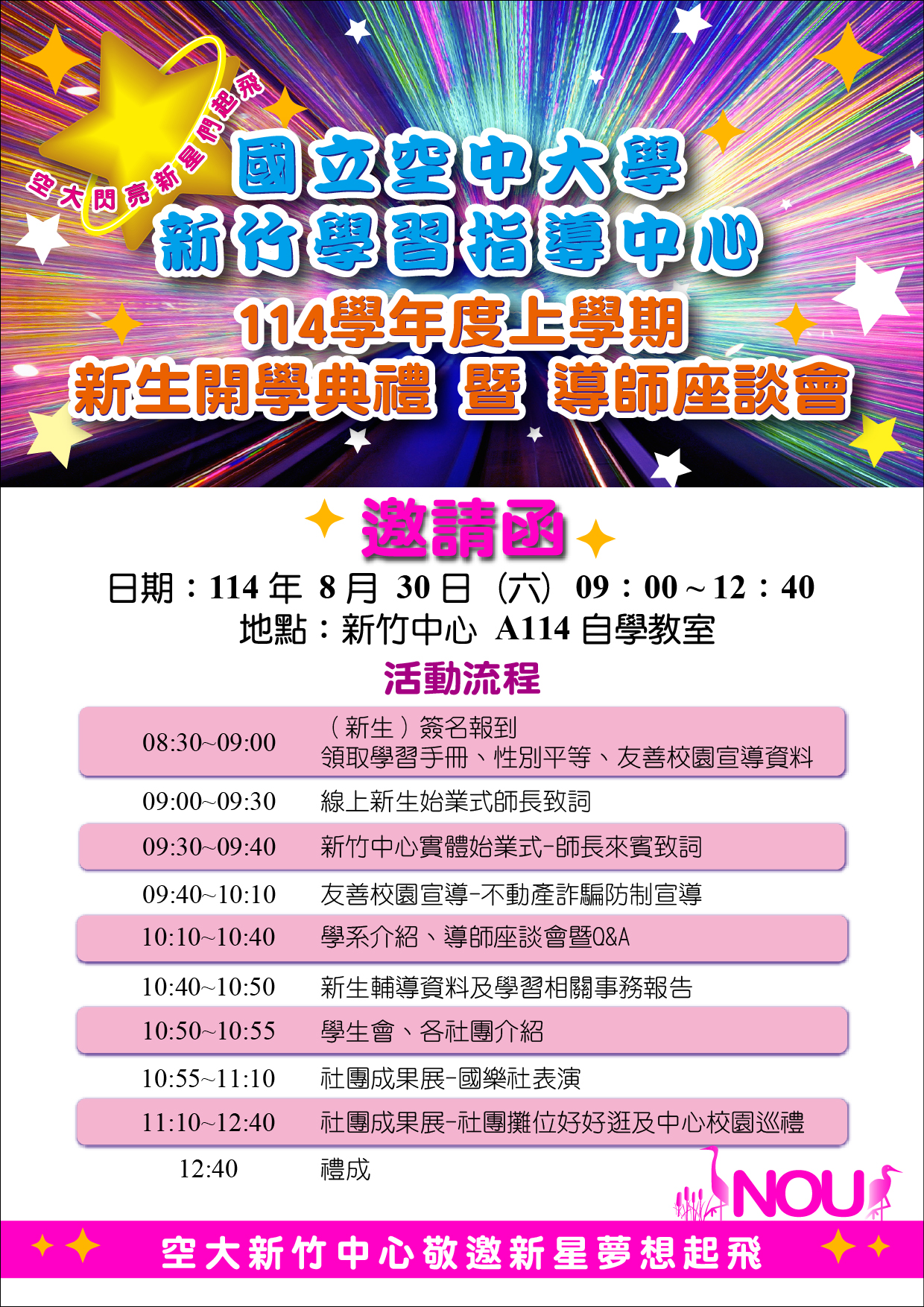 114學年度上學期 大學部暨專科部 新生開學典禮 暨 新生電腦操作學習基礎班~快掃碼...