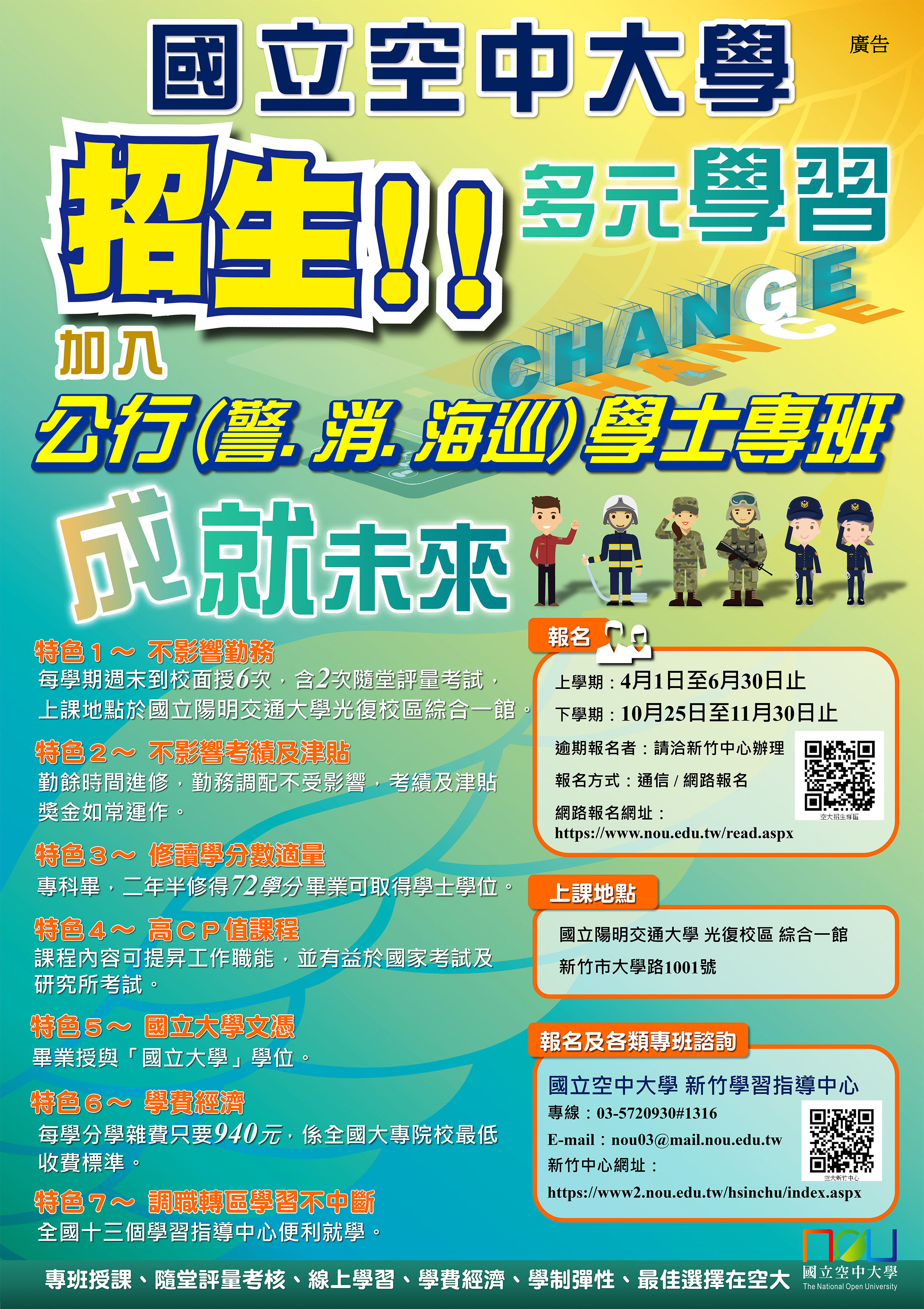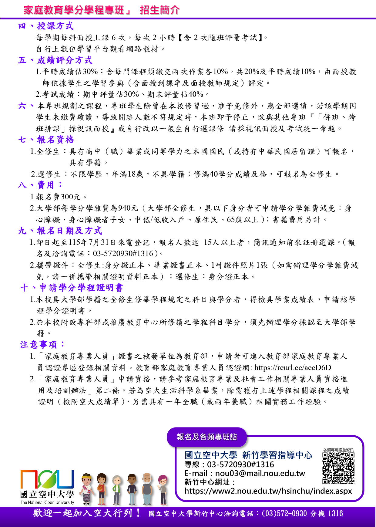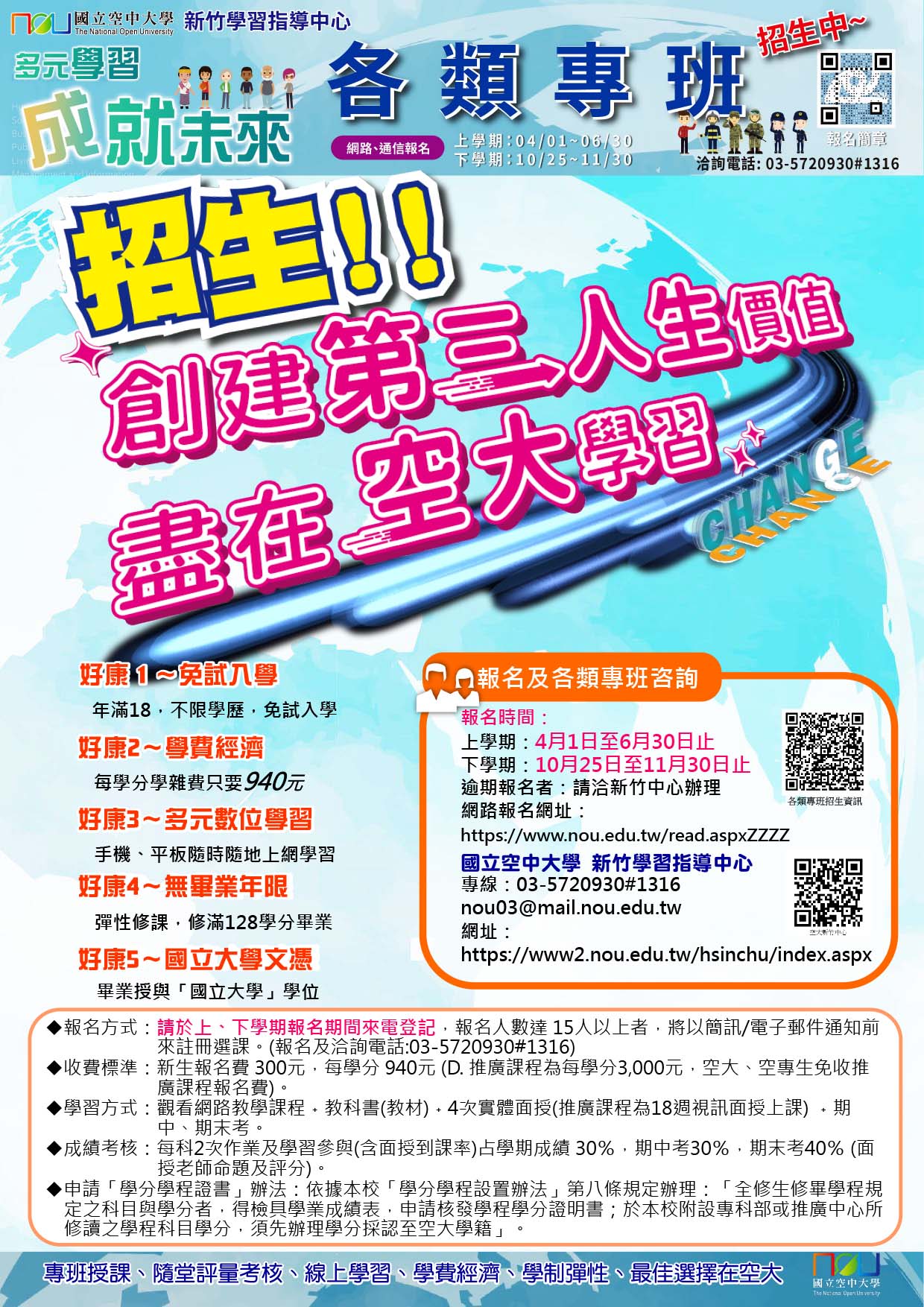 國立空中大學115學年度上學期新竹中心各類專班訊息