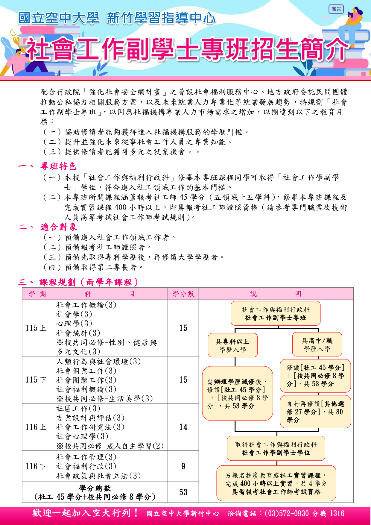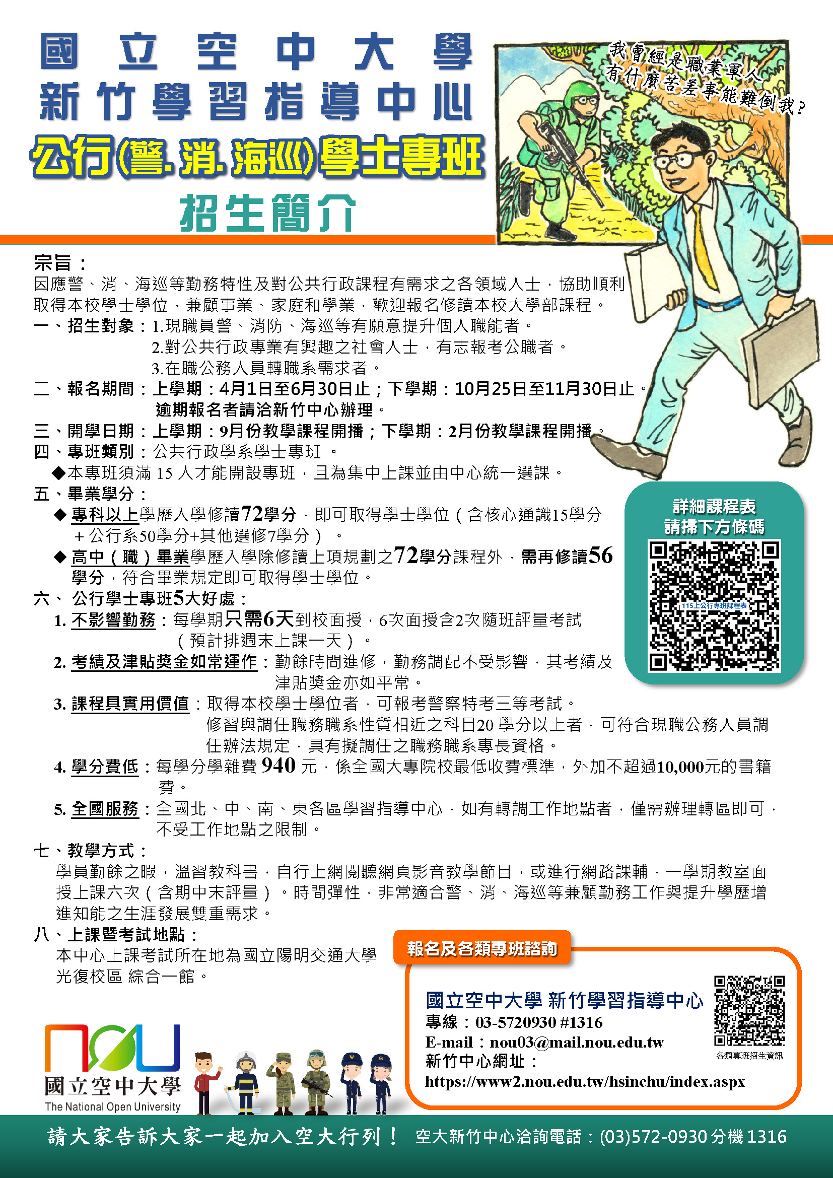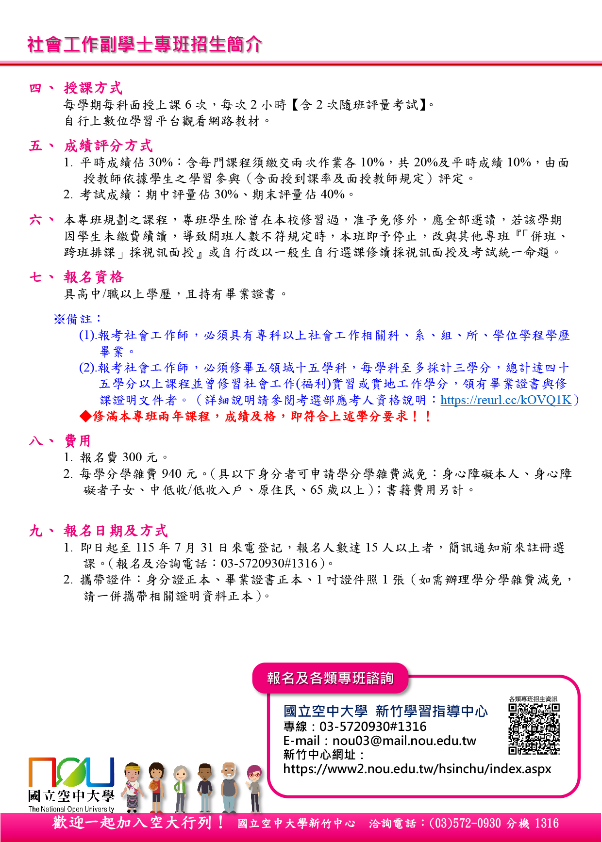 國立空中大學115學年度上學期新竹中心各類專班訊息