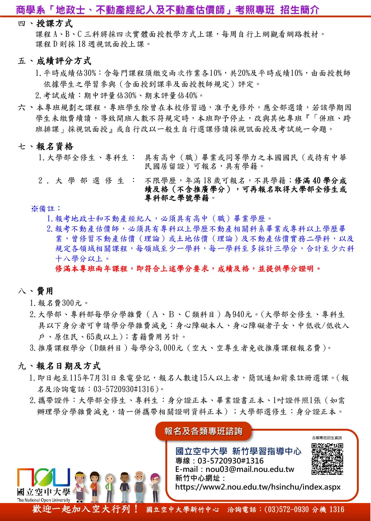 空大新竹中心115上不動產經紀人,地政士,估價師專班招生訊息-02