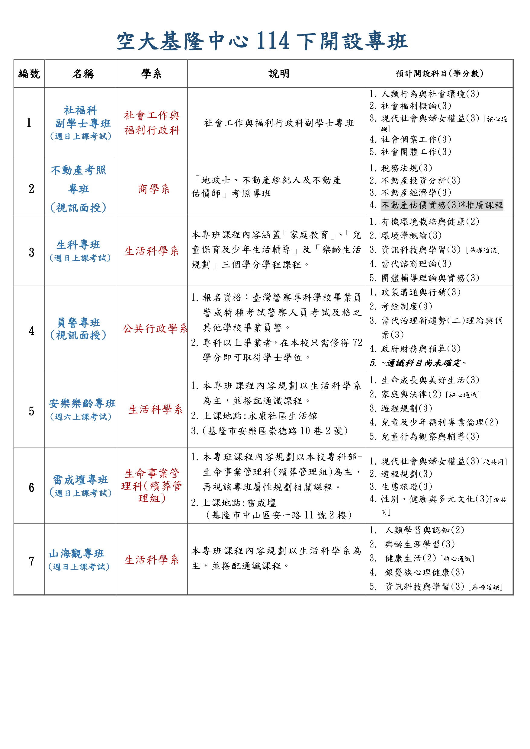 ★專班特色:1.面授時段集中並採隨班評量,可增進師生互動及學習成效。2.每班(每科)...