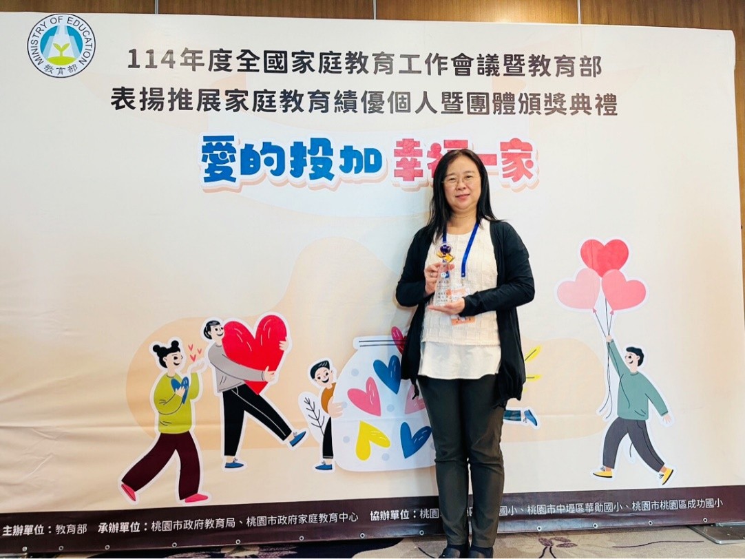 恭賀生活科學系健康家庭研究中心志工胡文菁 榮獲 114年度教育部推展家庭教育績優志...