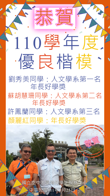 蘇胡慧珊同學:人文學系第二名&年長好學獎