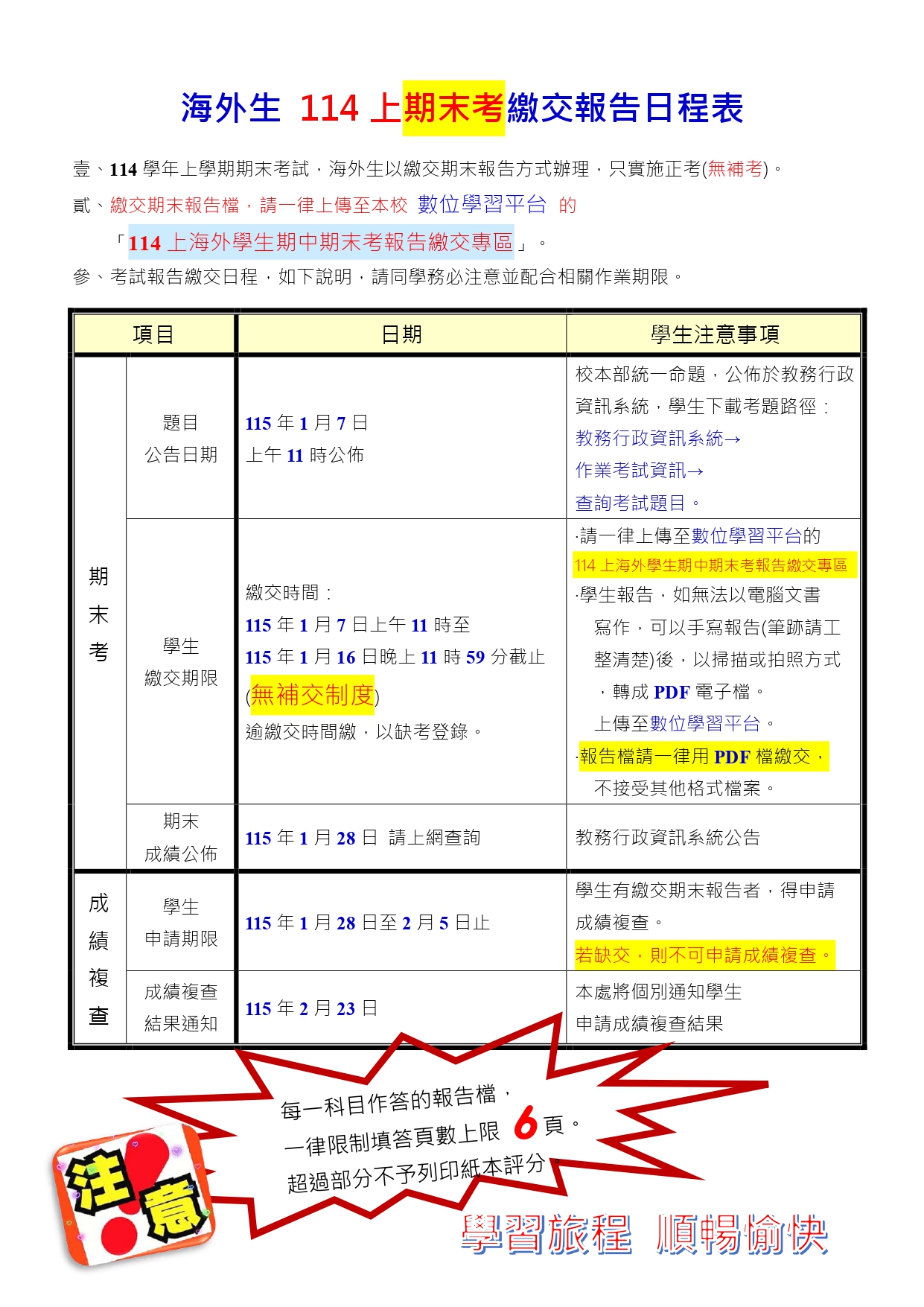 海外學生服務組公告【海外生-期中末考報告繳交位置補帖】路徑:數位學習平台→...