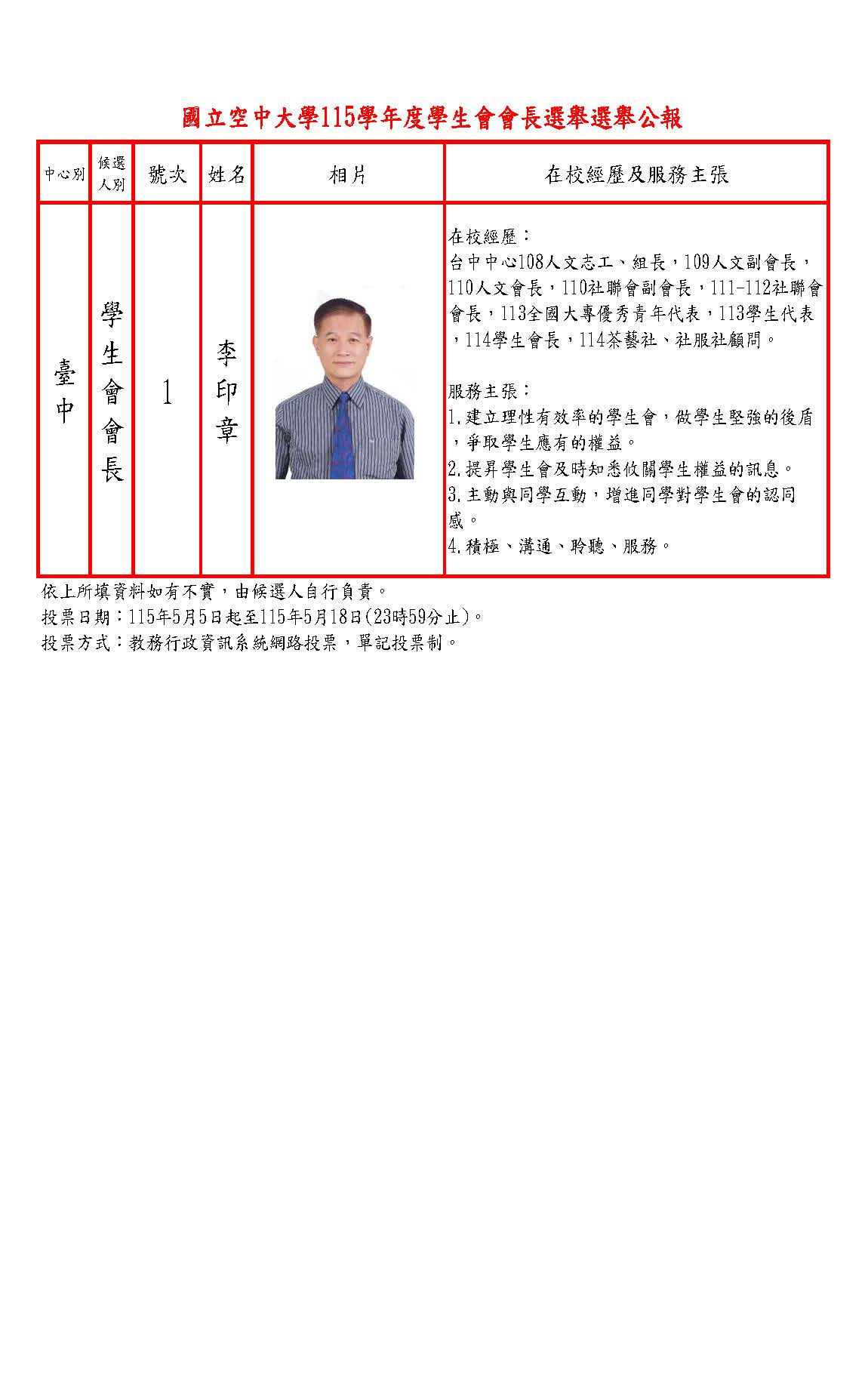 五、115學年度學生會會長、學生代表任期:自115年8月1日至116年7月31日止。