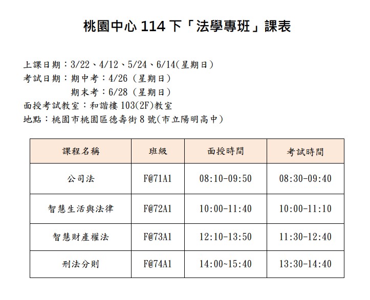 法學專班課表